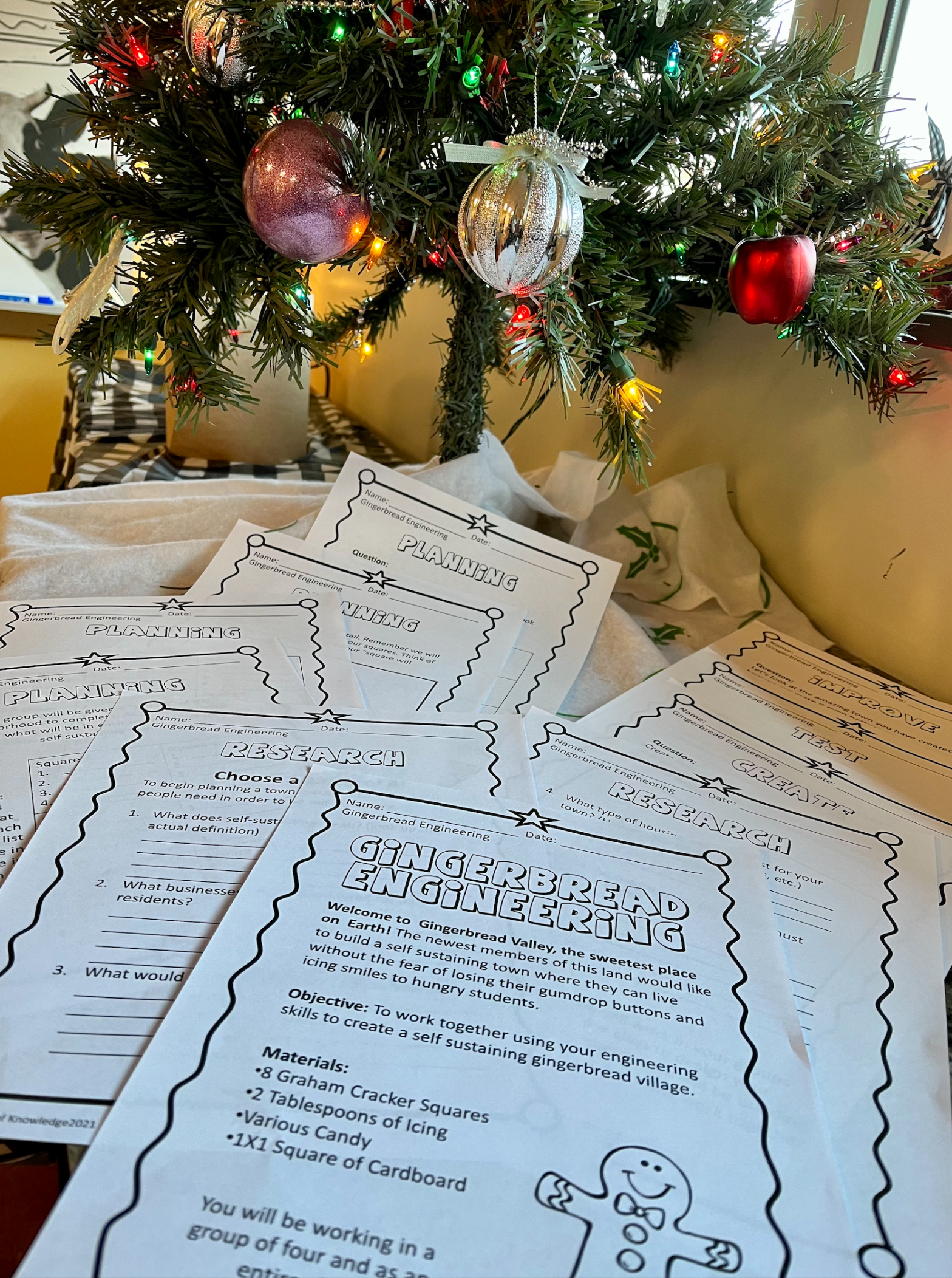 My students’ eyes are drifting to the softly falling snow outside our classroom window with visions of Christmas presents and treats in their eyes. Learning about engineering and sustainability are the absolute last things on their minds. So out I set to create something to catch their attention and tickle their taste buds resulting inContinue reading “Gingerbread Engineering”